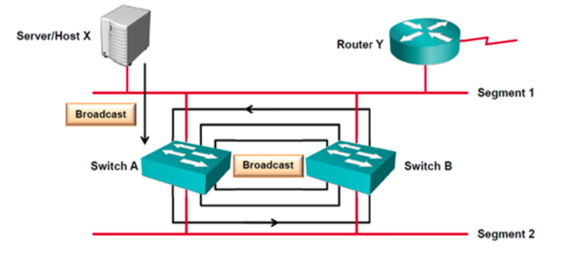 - 장비들간에 발생하는 Broadcast 트래픽들이 지속적으로 해당 링크를 사용하여 네트워크 기능을 악화시키는 현상