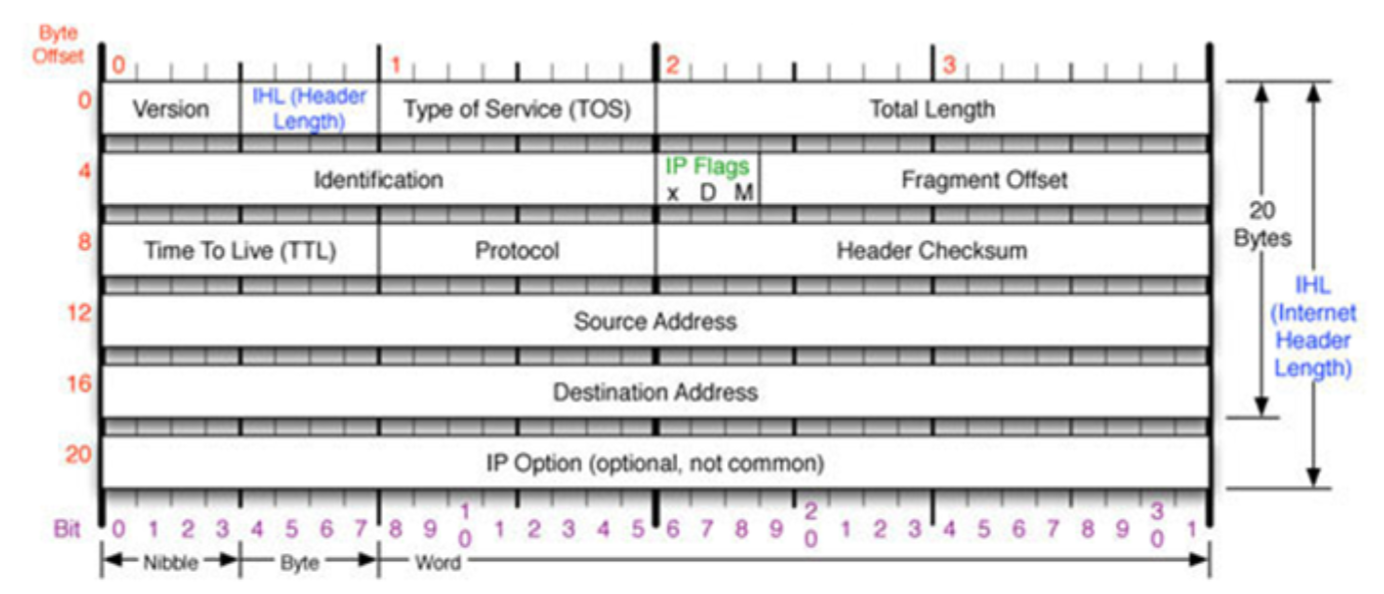 - Fragmentation Flag: 분열의 특성을 나타내는 flag (DF: 상위 계층에서 받은 데이터를 단편화할 것인지 판단, MF: IP 패킷 뒤에 단편화가 더 있는지 나타냄)